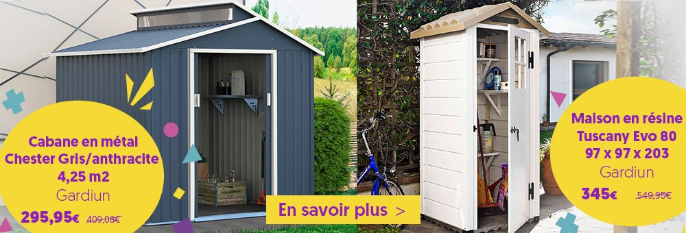 La cabane de Jardin en Résine Gardiun Rosetta est dotée d'un toit à deux pans. Il contient des bouches d'aération sur l'avant, afin d'empêcher la condensation et de permettre une ventilation en son intérieur. Il possède une fenêtre latérale...